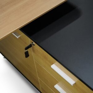 Excel 1.95m Executive Desk Right Return – Black Frame with Natural Top and Drawers